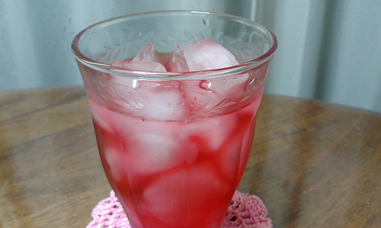 このすっきり感とさわやか感を何か別なものと組み合わせたらどうなのかなってことで、このサイダーと家の庭にあるラズベリーで作った無添加ジュースを混ぜてみたんです。